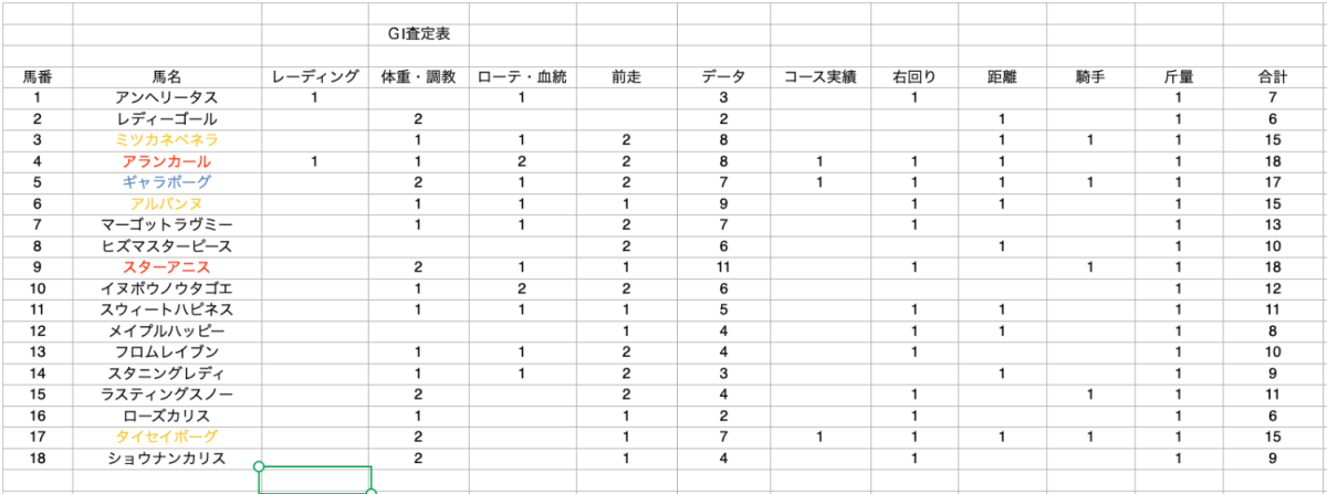 海外競馬により情報が少ない中での査定表となっております。ご考慮ください。