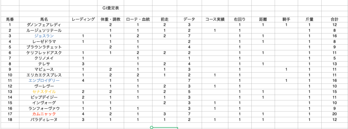 オークス9着も今回は距離も短くなることから桜花賞馬のエンプロイダリー、完成度では世代トップのオークス馬カムニャックの2頭に加えて、新興勢力の上記3頭の争いがメインシナリオになり、馬場状態や展開によりその他の馬がどこまで食いついてくるか?といったところであろう。