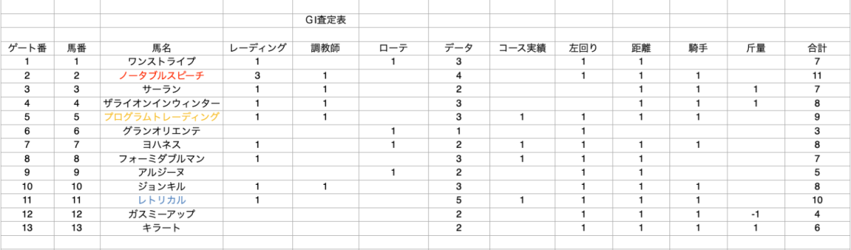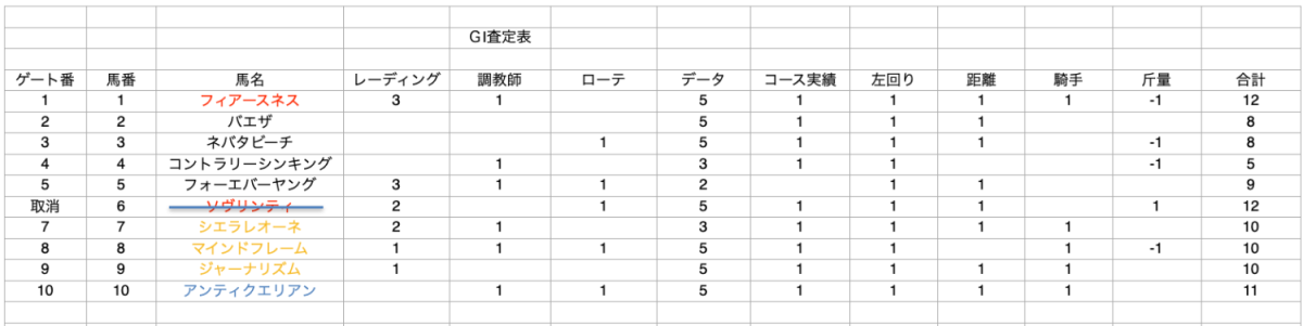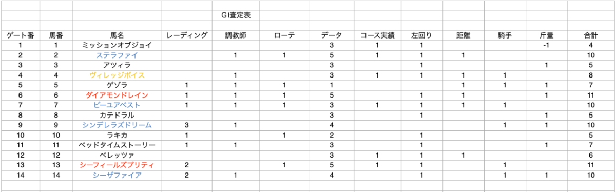 海外競馬により情報が少ない中での査定表となっております。ご考慮ください。
