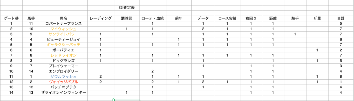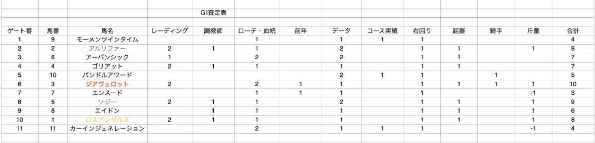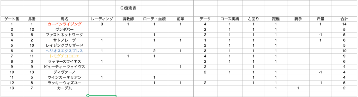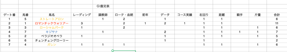 海外競馬により情報が少ない中での査定表となっております。ご考慮ください。