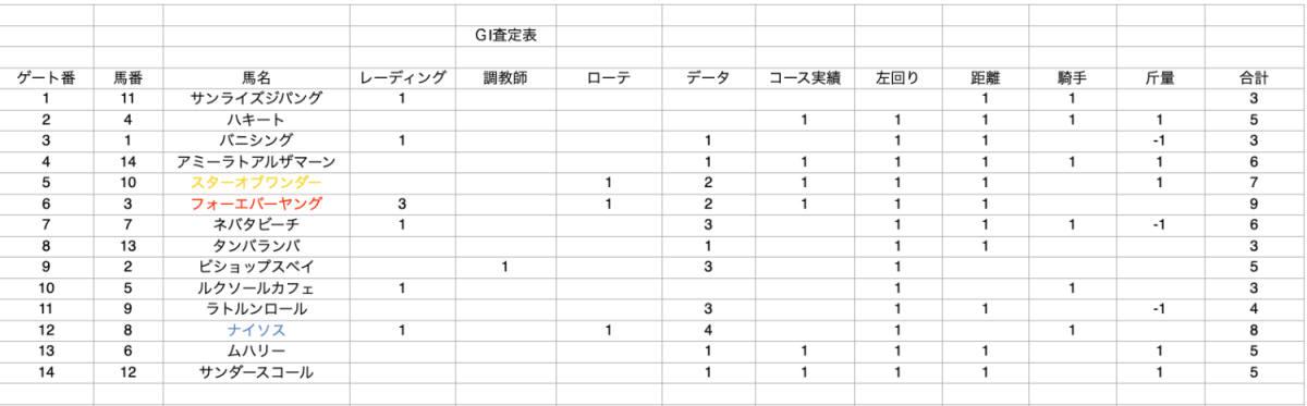 海外競馬により情報が少ない中での査定表となっております。ご考慮ください。
