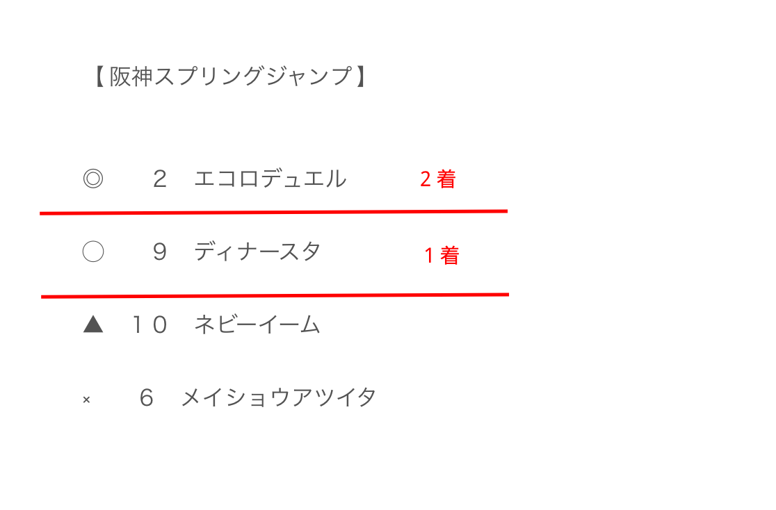 的中報告ー2026阪神スプリングジャンプ Posted On 2026年3月14日 By money_lion In 競馬 / No Comments 阪神スプリングジャンプ的中しました!w (上記はブログで公開したものに結果を加えたものです) 人気上位決着ではありましたが、3連単2点で仕留めましたw ディナースタ1着、エコロデュエル2着固定、 3着にネビーイームとへザルフェンの3連単のみでした。 ネビーイームは終盤に失速するケースがあるので、 ネビーイームだけじゃ心もとないとへザルフェンを組み入れたのが的中に繋がりました。 払い戻しも44倍ほどついて上出来ですw 明日は重賞2本ありますので頑張っていきましょう🎵 Read More