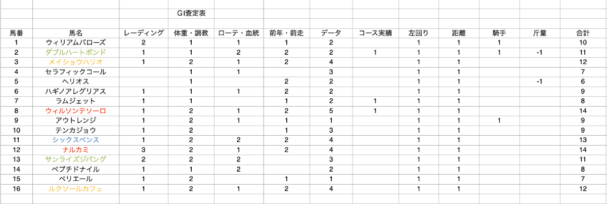 ナルカミ・ダブルハードボンドと共に人気になりそうなルクソールカフェは大外枠がネガティブと言うよりは癖が強い中京コースにおいて外国人のテン乗りと言うのは明らかにマイナス要素と見てバッサリ切りたい。また前走初ダートいきなりのJPN1で2着に入ったシックスペンスは今回はJRAメンバーがズラリと揃っているだけに前走のように簡単にはいかないだろうが寒い時期に好走実績があるだけに季節性は追い風になるか。本線はダブルハードボンドとナルカミの一騎打ちとみるが、どちらかが飛ぶような展開になるとG1実績のある古豪も多く馬券内に入っても不思議ではない馬は案外多いように思う。